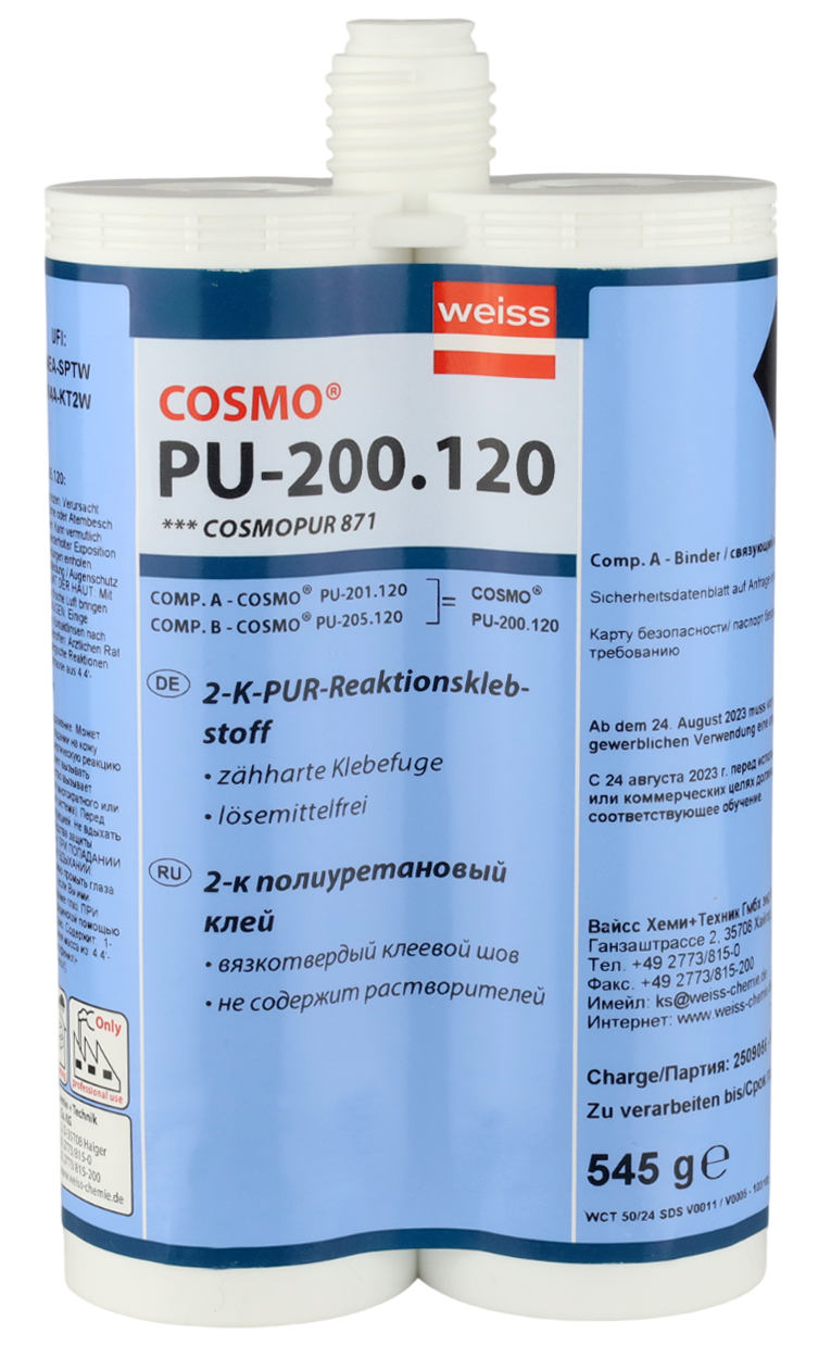 COSMO PU-200.120 — это двухкомпонентный полиуретановый конструкционный клей, разработанный для прочного и долговечного соединения различных материалов: ПВХ, алюминия, HPL-панелей, стеклопластика, композитов и дерева.